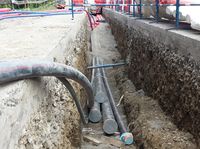 L'illustration ci-contre montre l'utilisation d'une ancienne conduite d'eau (brute ou potable, peu importe), utilisée comme support pour l'installation de fourreaux PEHD destinés aux réseaux télécoms. Ainsi la pérennité de l'intégrité mécanique de la conduite importe moins, c'est un moyen mobilisé à l'instant t pour faciliter et regrouper le passage de fourreaux en quantité raisonnable.